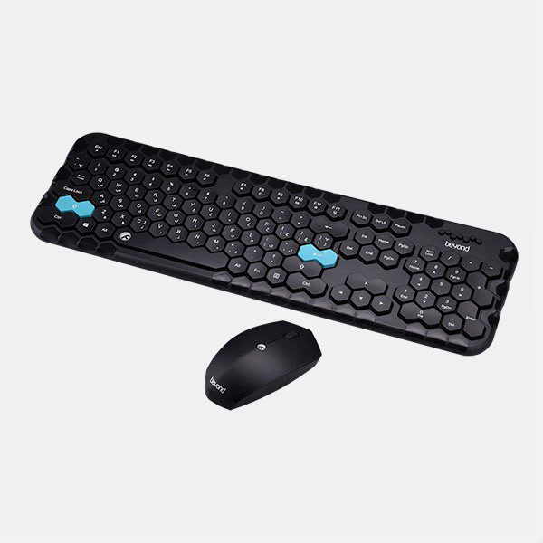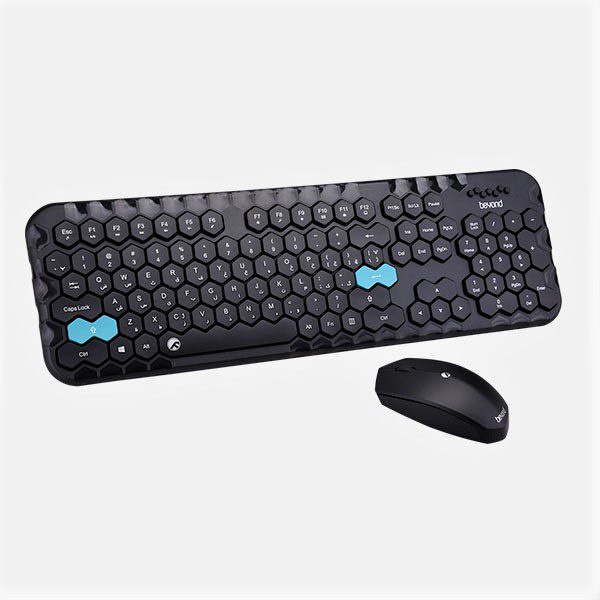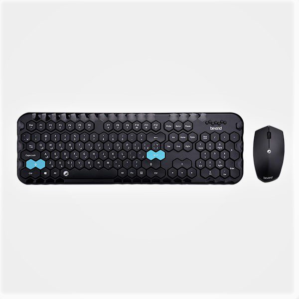 ویژگیهای خاص: طراحی زیبا و شش ضلعی کلیدها، دارای برد بیسیم 10 متر، امکان استفاده از ماوس با هر دو دست
