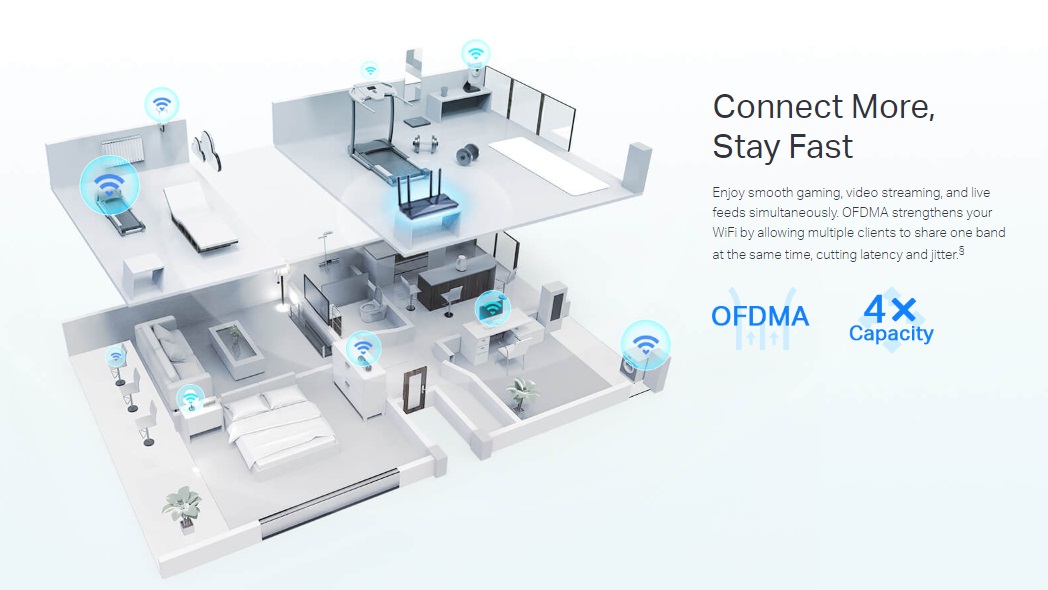 آخرین نسل از فناوری WiFi سرعت بیشتر، تاخیر کمتر و ظرفیت بالاتر را به ارمغان می آورد و اتصالات همزمان بیشتری را در شبکه خانگی شما امکان پذیر می کند.