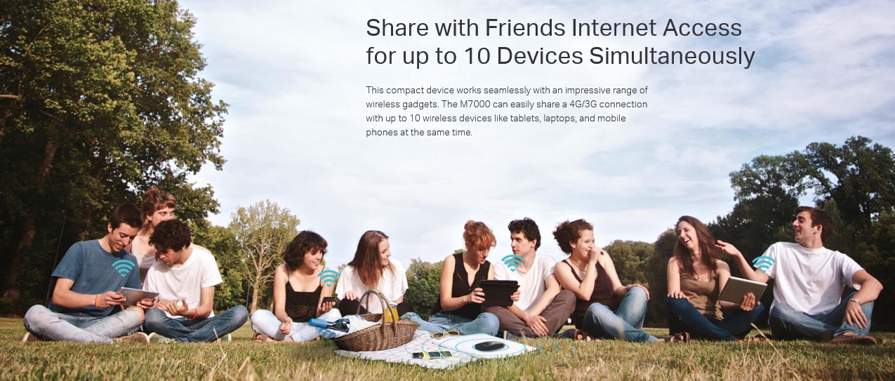 این دستگاه جمع و جور به طور یکپارچه با طیف چشمگیر گجت های بی سیم کار می کند. مودم سیم کارت خور M7000 می تواند به راحتی اتصال 4G/3G را با حداکثر 10 دستگاه بی سیم مانند تبلت، لپ تاپ و تلفن همراه به طور همزمان به اشتراک بگذارد.